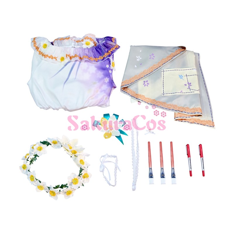 ◆ セット:ワンピース、エプロン、胸先飾物、耳飾り、髪飾り、首飾り、足飾り、ペン